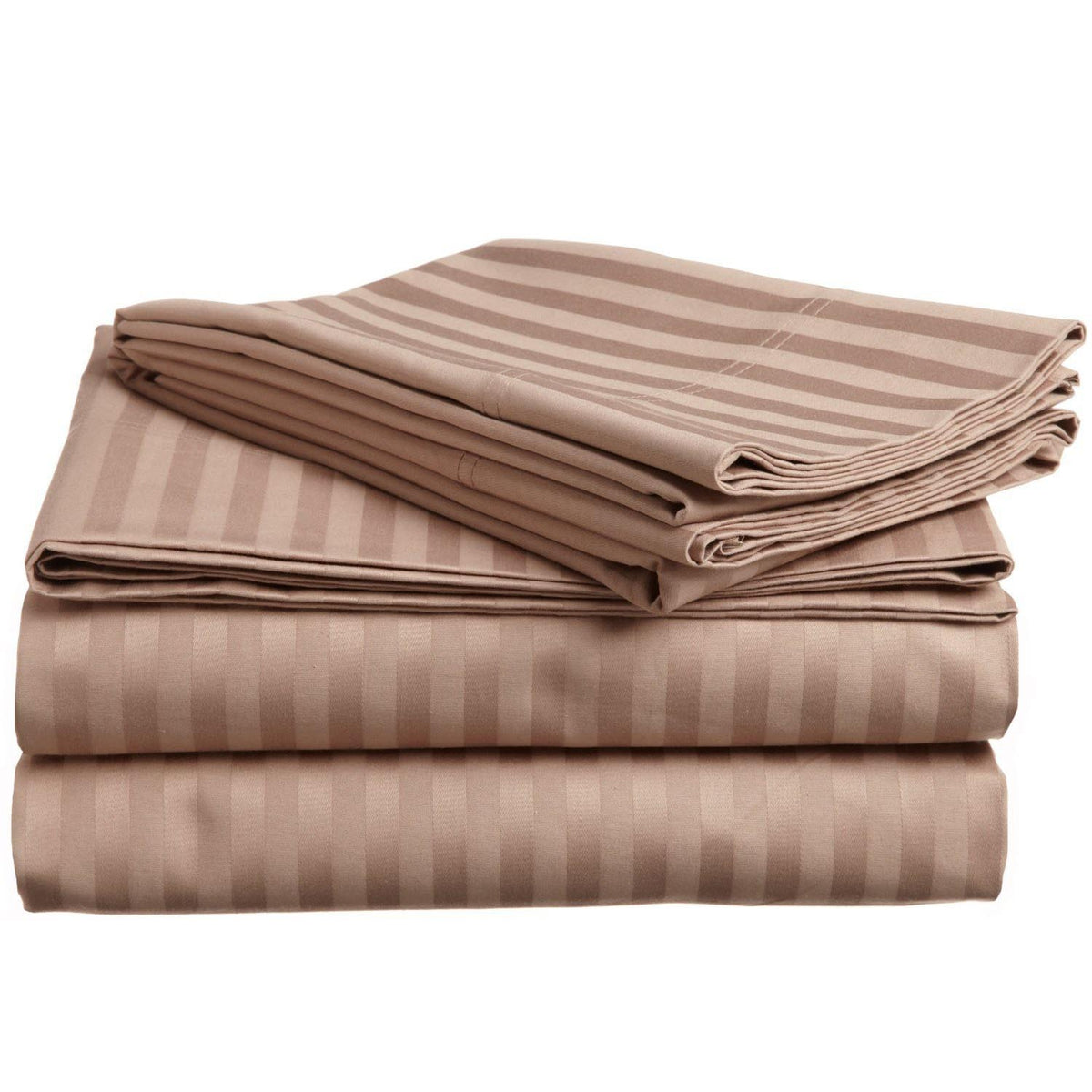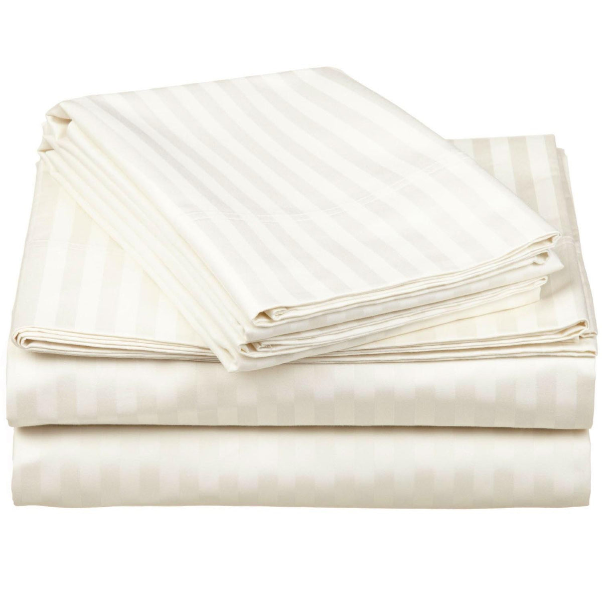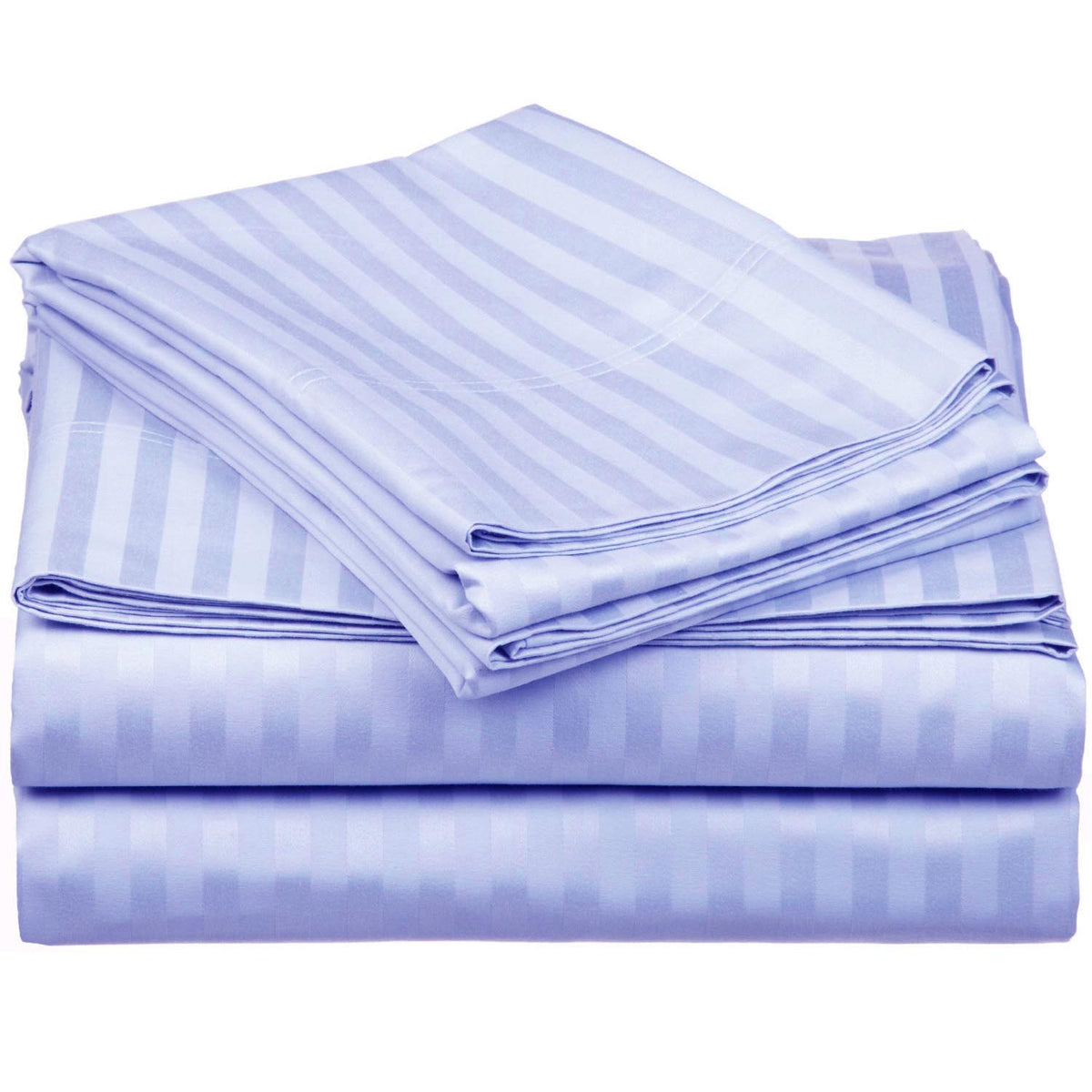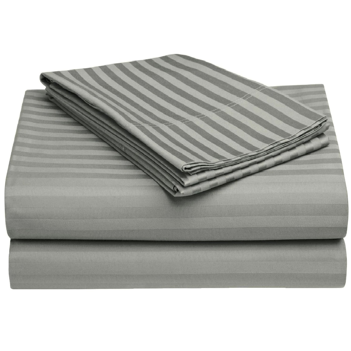 This premium down bundle is available in a classic stripe style. It includes a soft and buttery 100% long staple cotton sheet set, duvet cover set and a plush and fluffy all year warm down alternative comforter.