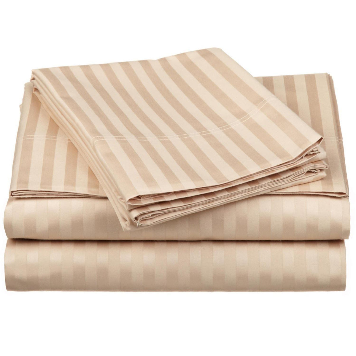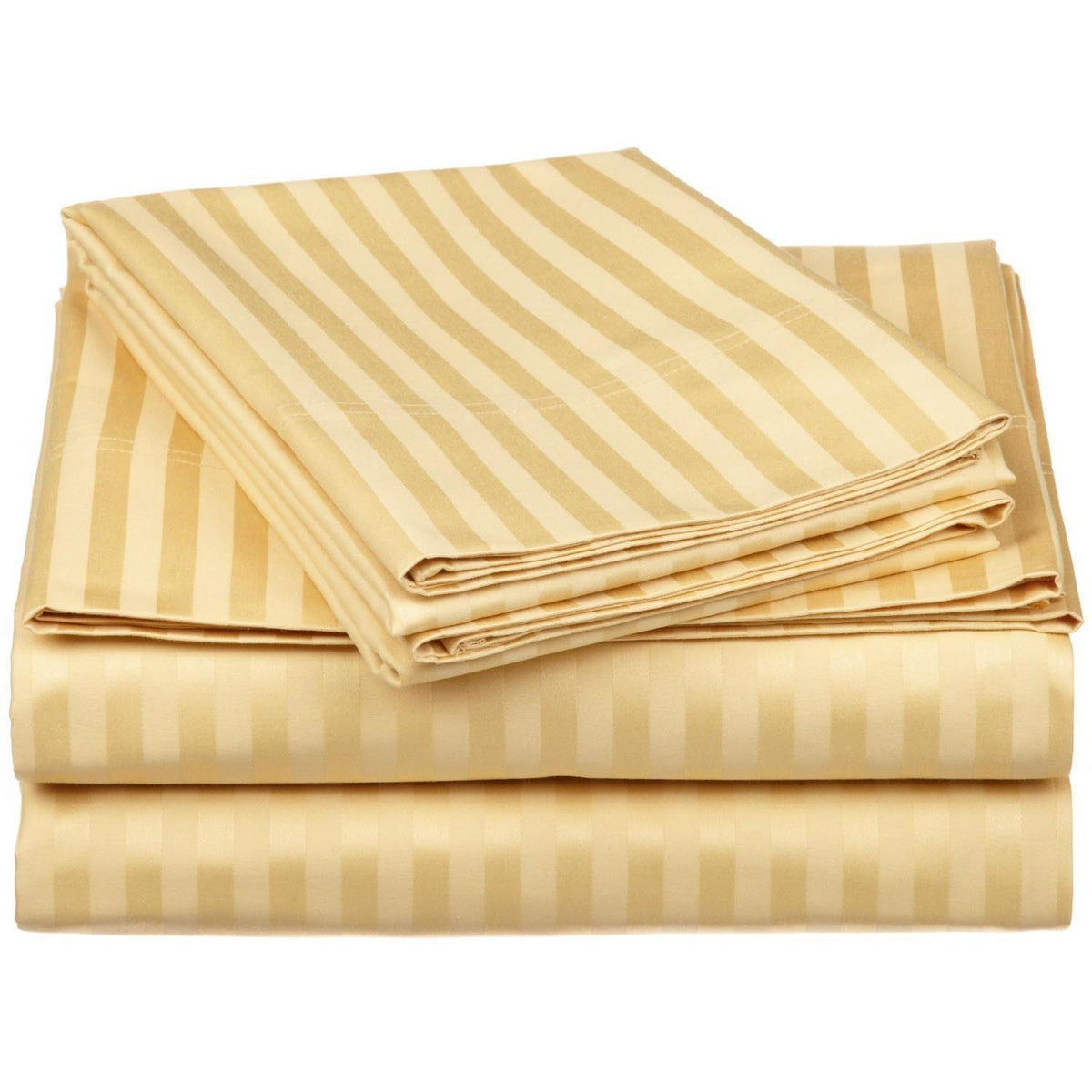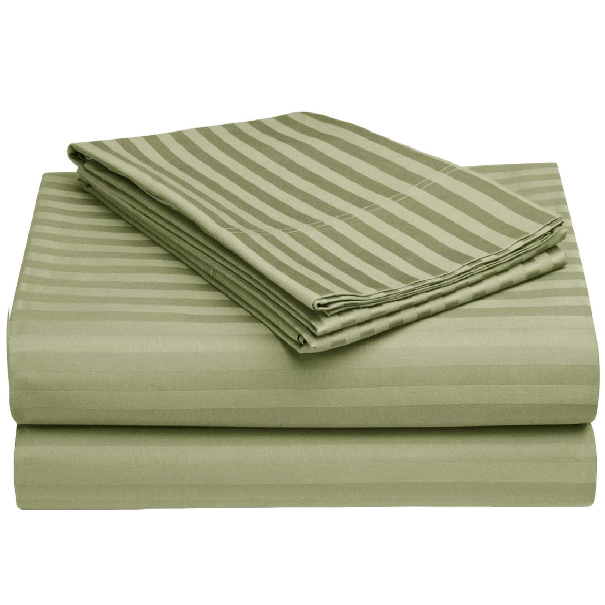 This premium down bundle is available in a classic stripe style. It includes a soft and buttery 100% long staple cotton sheet set, duvet cover set and a plush and fluffy all year warm down alternative comforter.