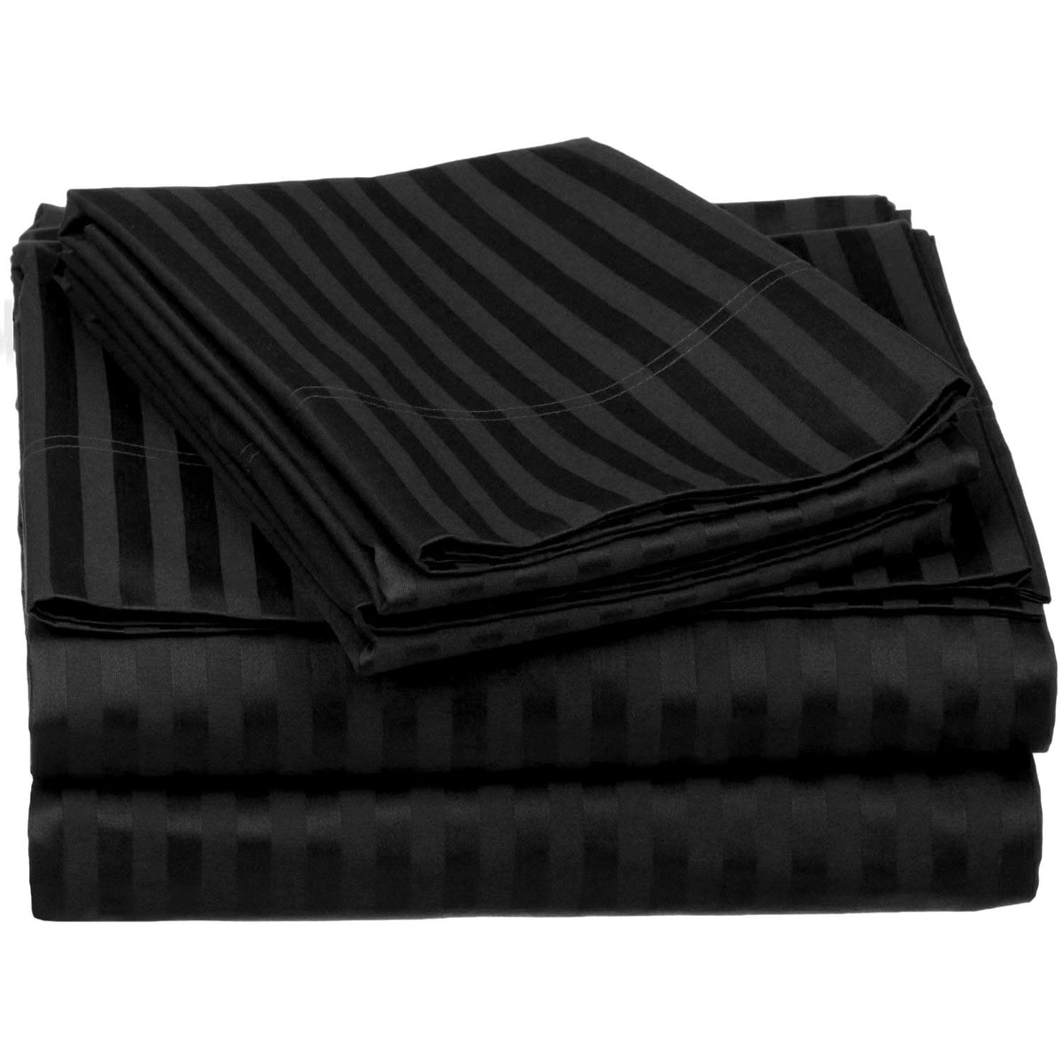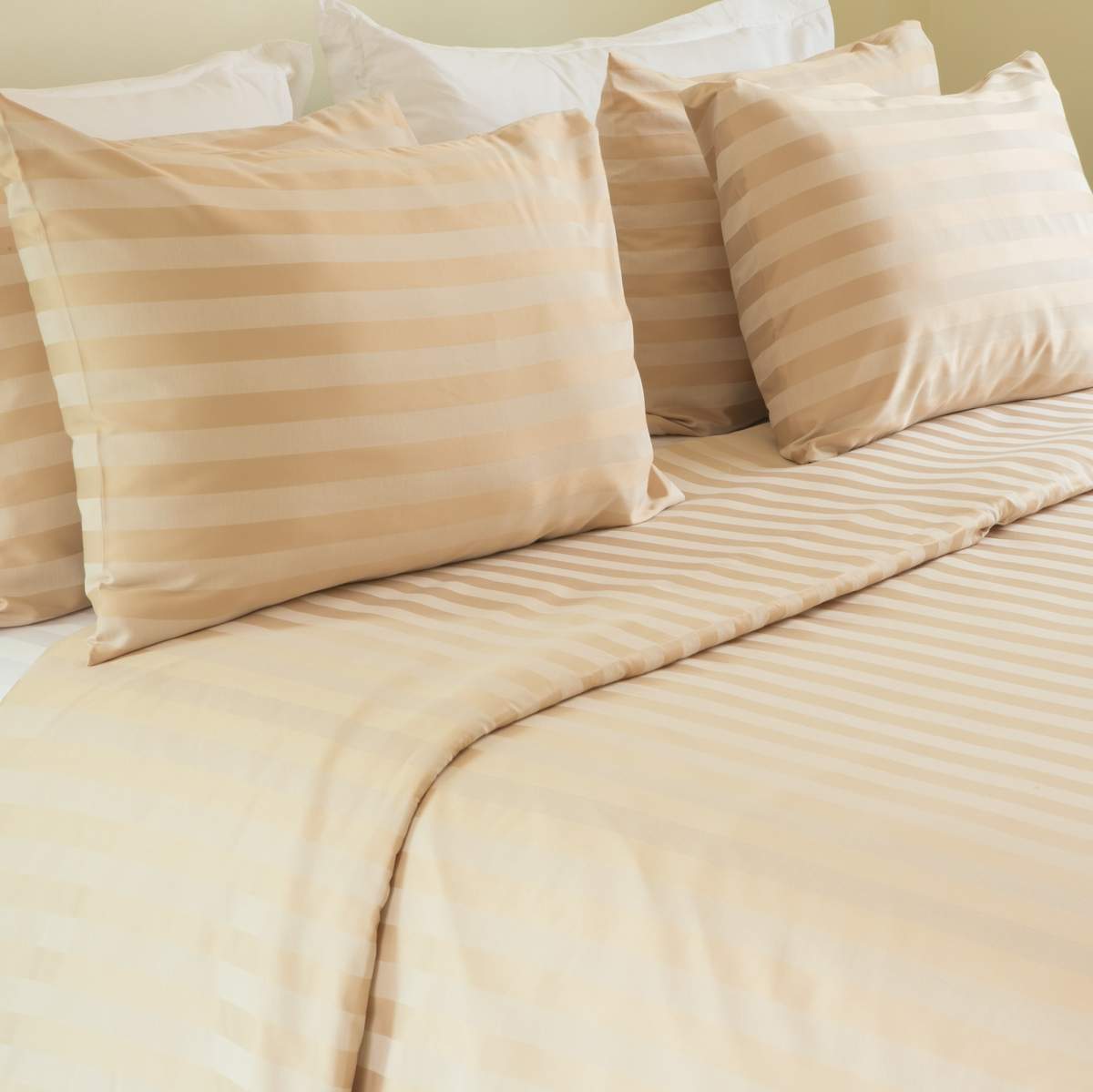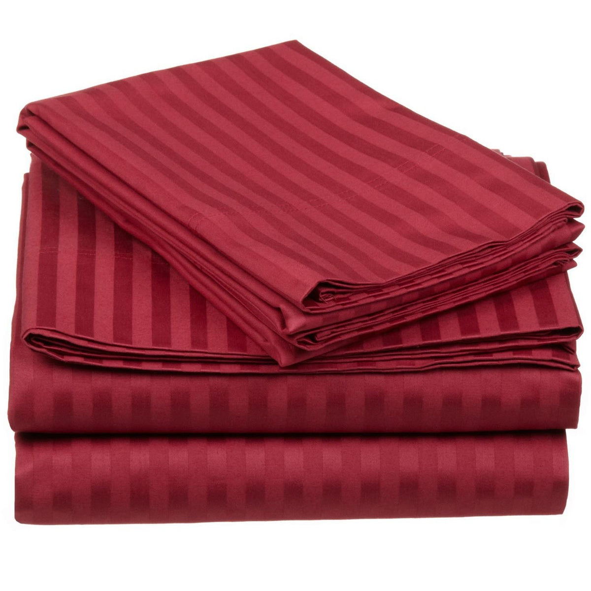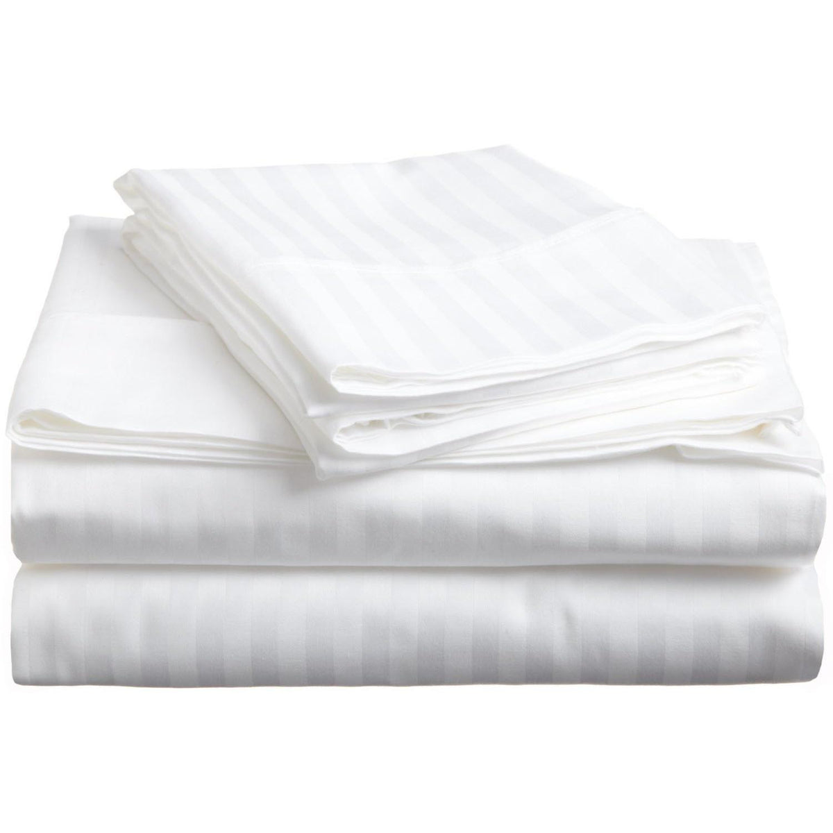 This premium down bundle is available in a classic stripe style. It includes a soft and buttery 100% long staple cotton sheet set, duvet cover set and a plush and fluffy all year warm down alternative comforter.