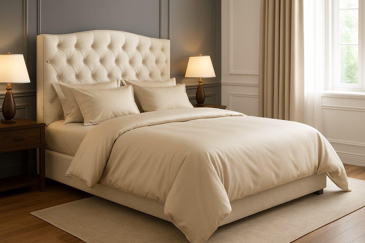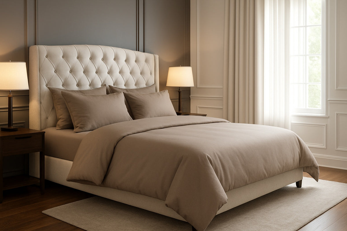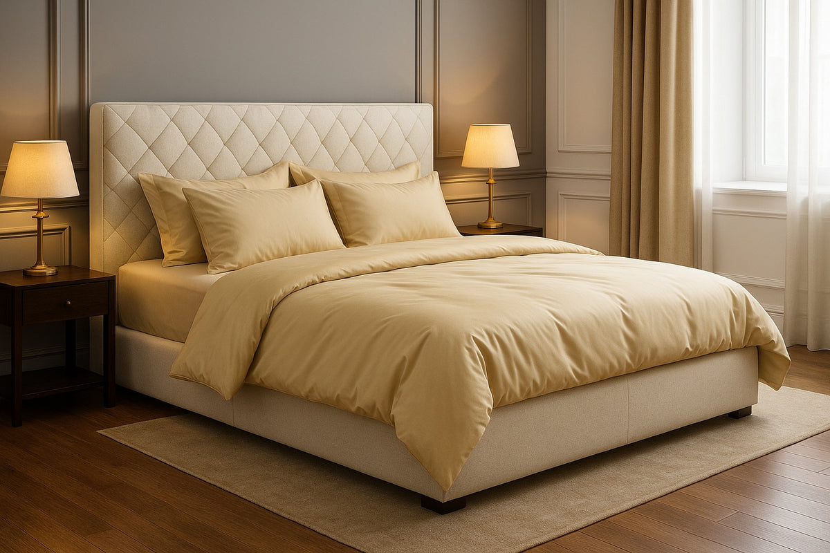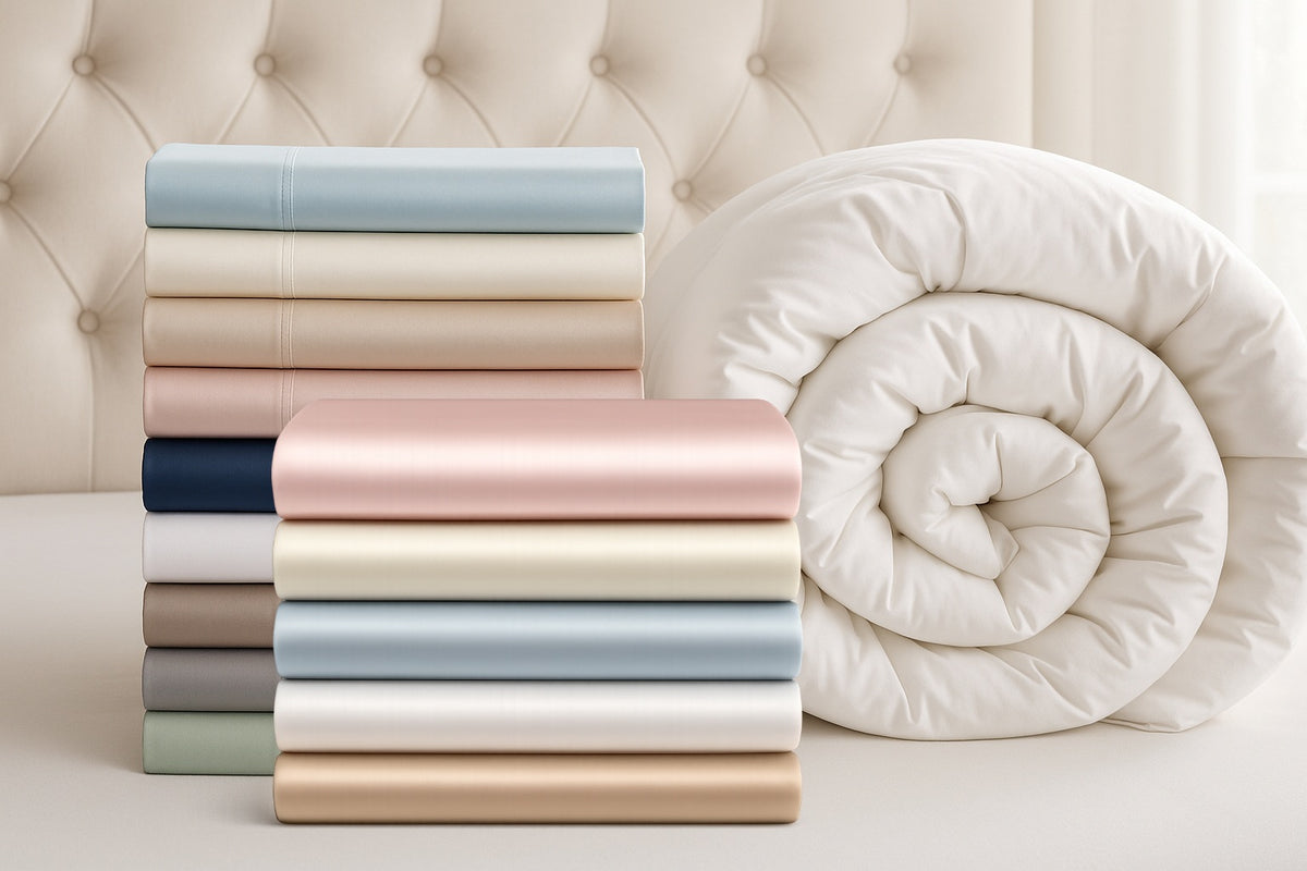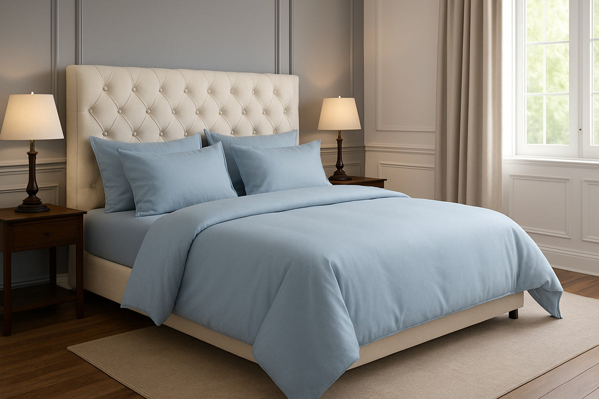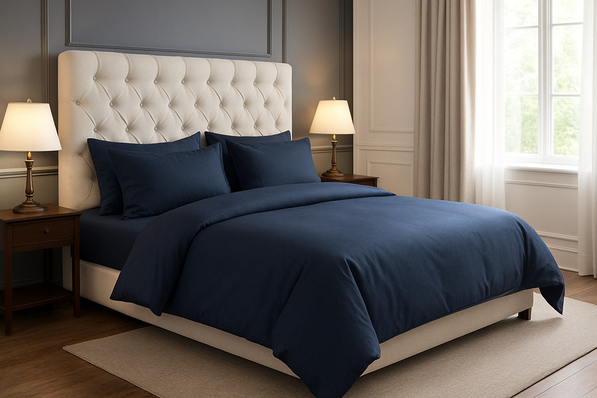 The premium 1500 Thread Count goose down bundle is for you if you are a lover of solid hues. The 8 piece bedding set includes a soft and buttery 1500 Thread Count 100% Egyptian cotton 4 piece sheet set, a 1500 Thread Count 100% Egyptian cotton 3 piece duvet cover and a plush and fluffy all year warm Goose down comforter.